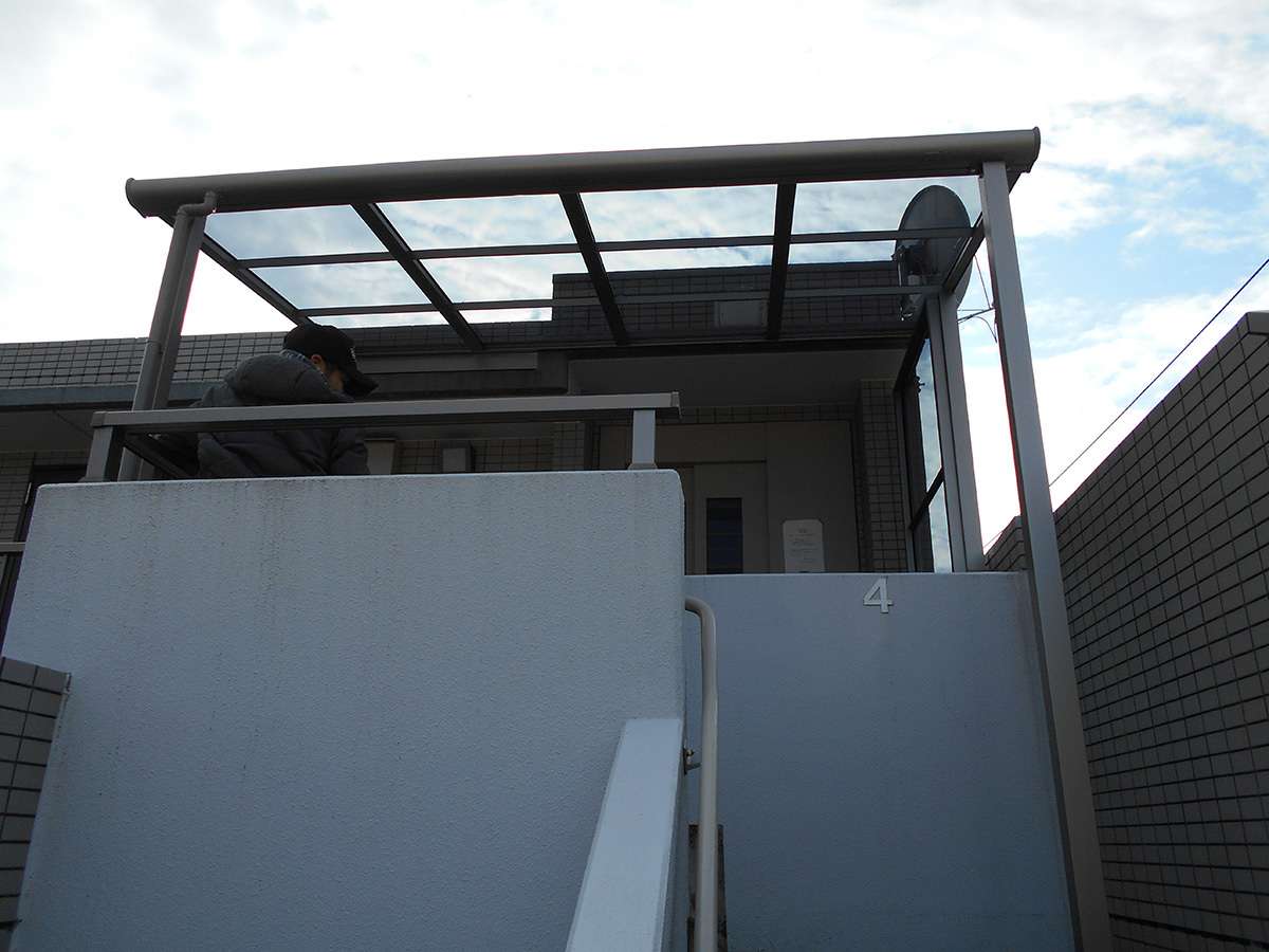 マンションの防風防雨対策としてテラス屋根とスクリーンパネルを設置しました。